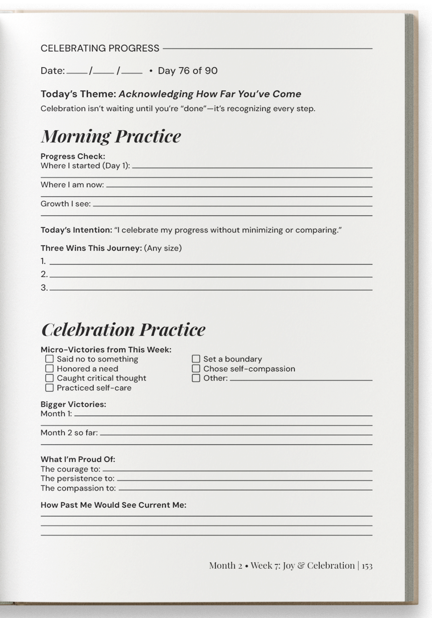 Track micro-wins and watch your confidence soar. This isn't toxic positivity—it's recognizing real progress. Because what you acknowledge, grows.