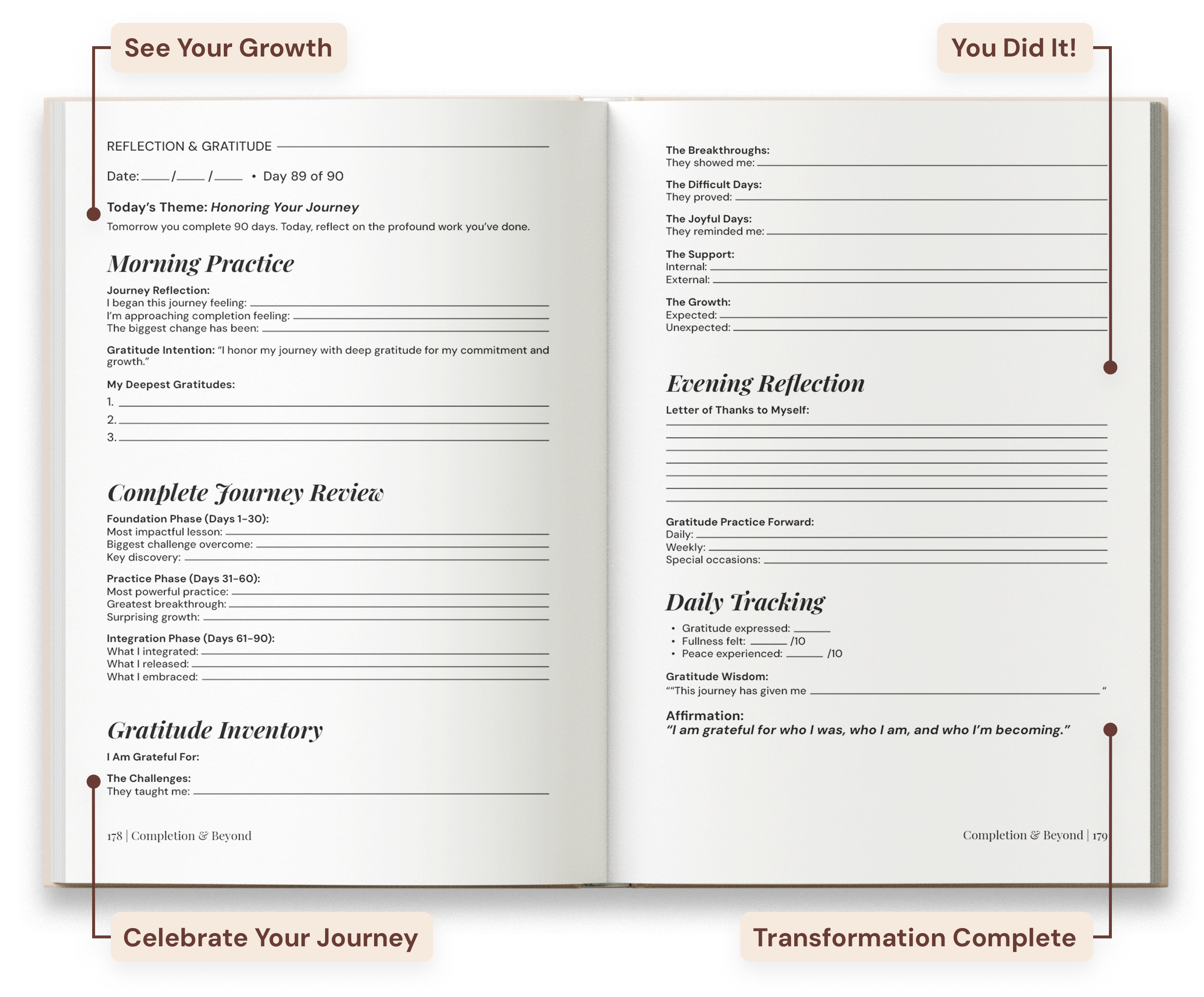 ✓ Neuroplasticity Principles: 90-day structure based on research showing new neural pathways solidify between 66-254 days of consistent practice.