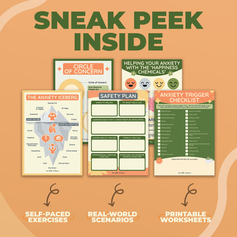 Inside the Anxiety Workbook, you’ll find a 30+ page guided resource packed with practical tools and exercises: